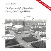 Tufte hat in seinem Essay The Cognitive Style of Power Point eine herrlich zu lesende Kritik an der beim Einsatz von Powerpoint häufig produzierten Inhaltsleere vorgelegt und geht darin sogar so weit, die Explosion des Columbia Space Shuttles auf missverständliche Powerpointfolien zurückzuführen (PowerPoint Does Rocket Science). Allerdings hinterlässt die Lektüre nach etwas zeitlichem Abstand einen schalen Nachgeschmack, gemäß dem Roman Herzog zugeschriebenen Ausspruch Wir haben kein Erkenntnis-Problem sondern ein Umsetzungsproblem. Will sagen, Kritik ist einfach, besser machen schon schwieriger. Dennoch eine kurze Tufte Kostprobe zum Thema: